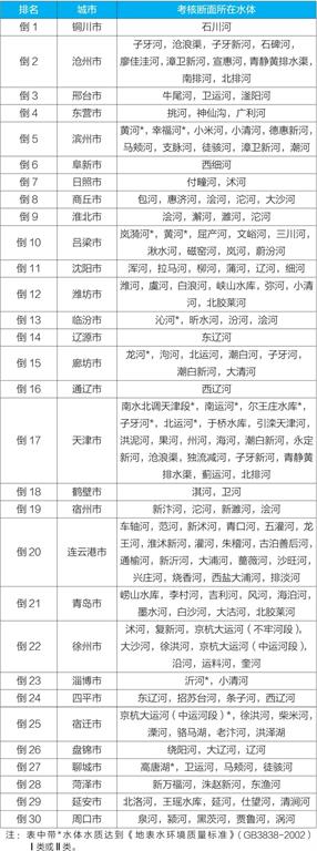 2020年10月國家地表水考核斷面水環(huán)境質(zhì)量狀況排名后30位城市及所在水體